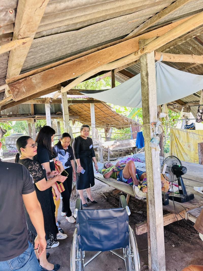 นางสาวสายรุ้ง มูลศรีแก้ว ปลัดองค์การบริหารส่วนตำบลพรมสวรรค์ปฏิบัติหน้าที่นายกองค์การบริหารส่วนตำบลพรมสวรรค์ หัวหน้าส่วนร่วมมอบรถเข็นให้ผู้พิการ น.ส.บังอร สารรัตน์ หมู่ที่ 4 ตำบลพรมสวรรค์ อำเภอโพนทอง จังหวัดร้อยเอ็ด